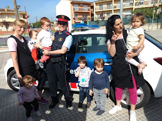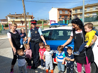 Ens han explicat un conte molt bonic ,ens han deixat posar les seves gorres ,pujar al cotxe, tocar la sirena, encendre els llums .....